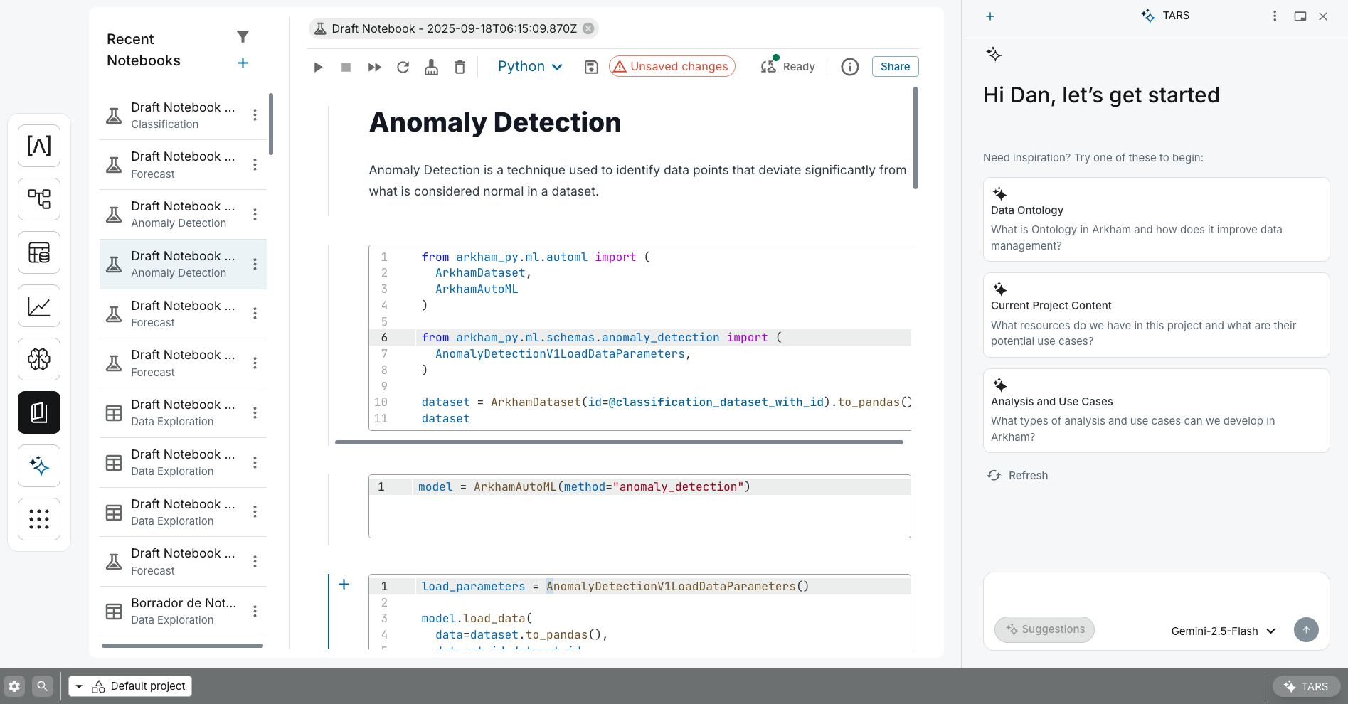 At this stage, TARS serves as a powerful co-pilot, automating boilerplate code and accelerating the research process. It's deeply integrated into the notebook environment, capable of understanding the context of the code and data on screen. Ask it to: