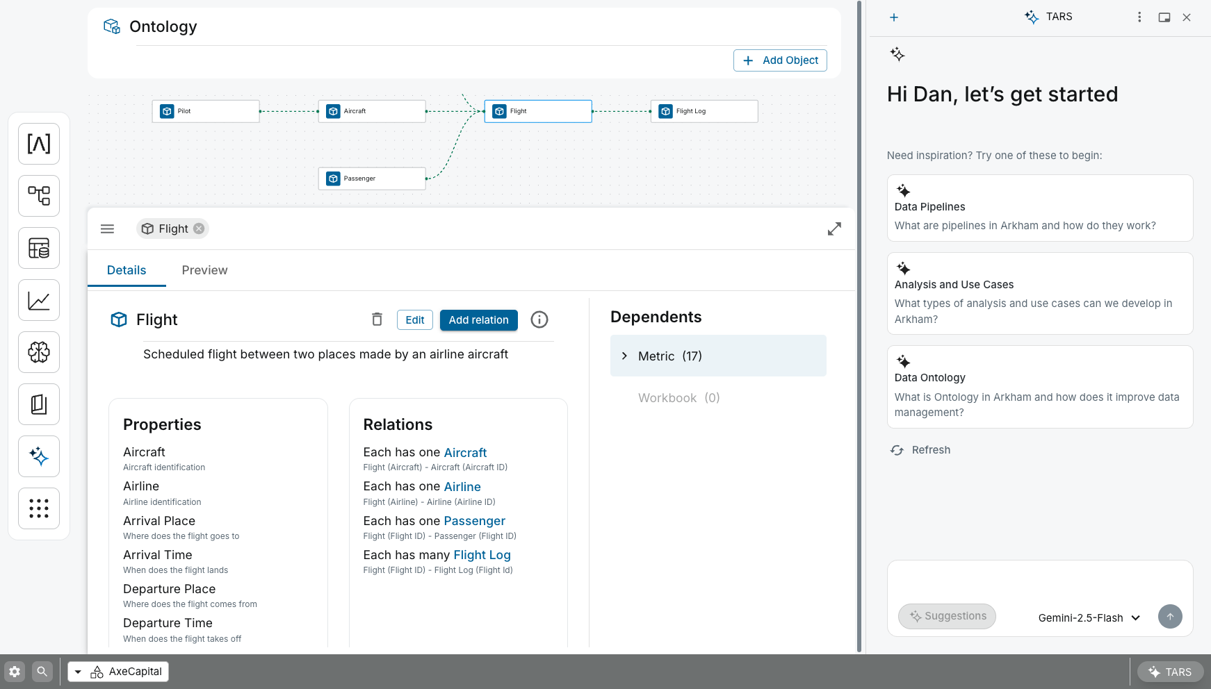 When you select an Object in our Ontology Graph (like the Aircraft