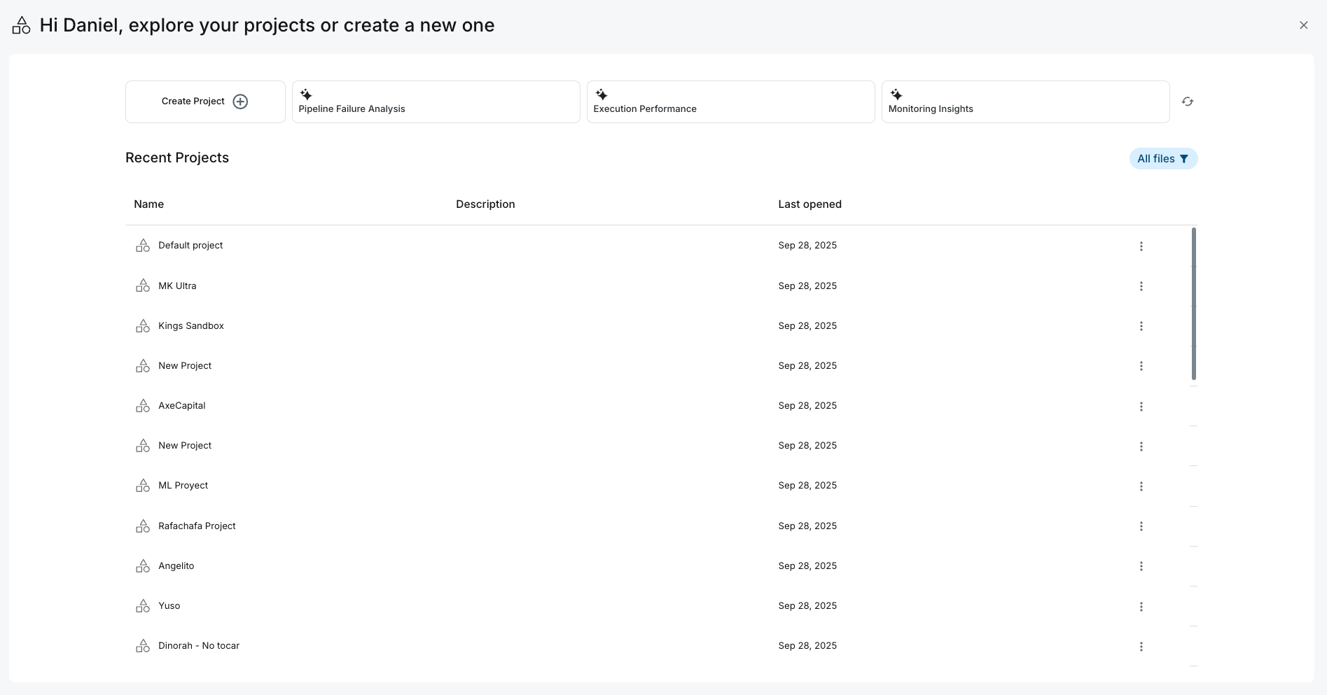 Our Projects dashboard, the central launchpad where builders organize all data assets, models, and documentation into a single, governed workspace for collaboration.