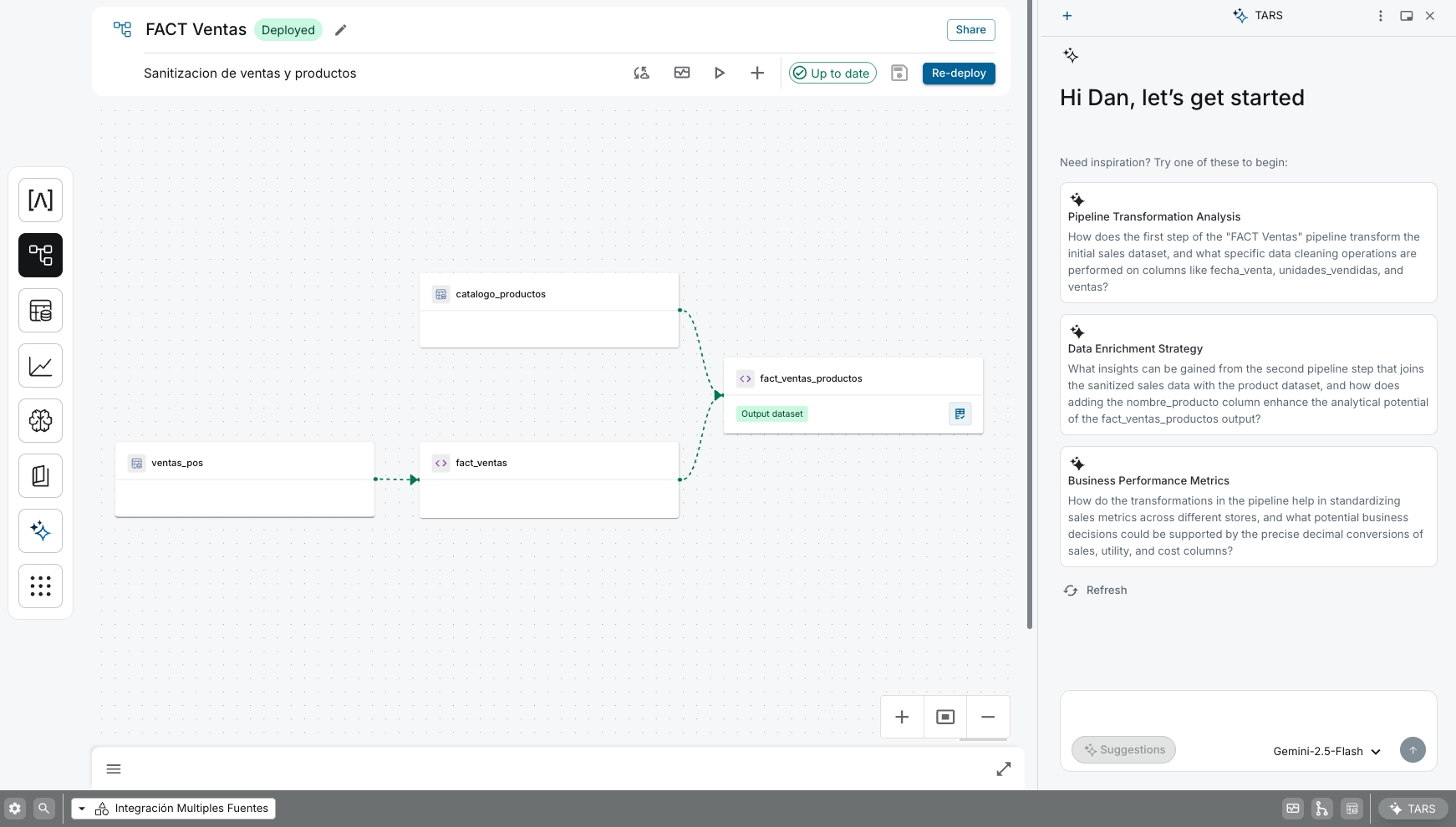 - TARS: Tu copiloto de IA para generar SQL, depurar errores y verificar el estado del pipeline.Your AI co-pilot for generating SQL with Trino Dialect, debugging errors, and checking pipeline status.